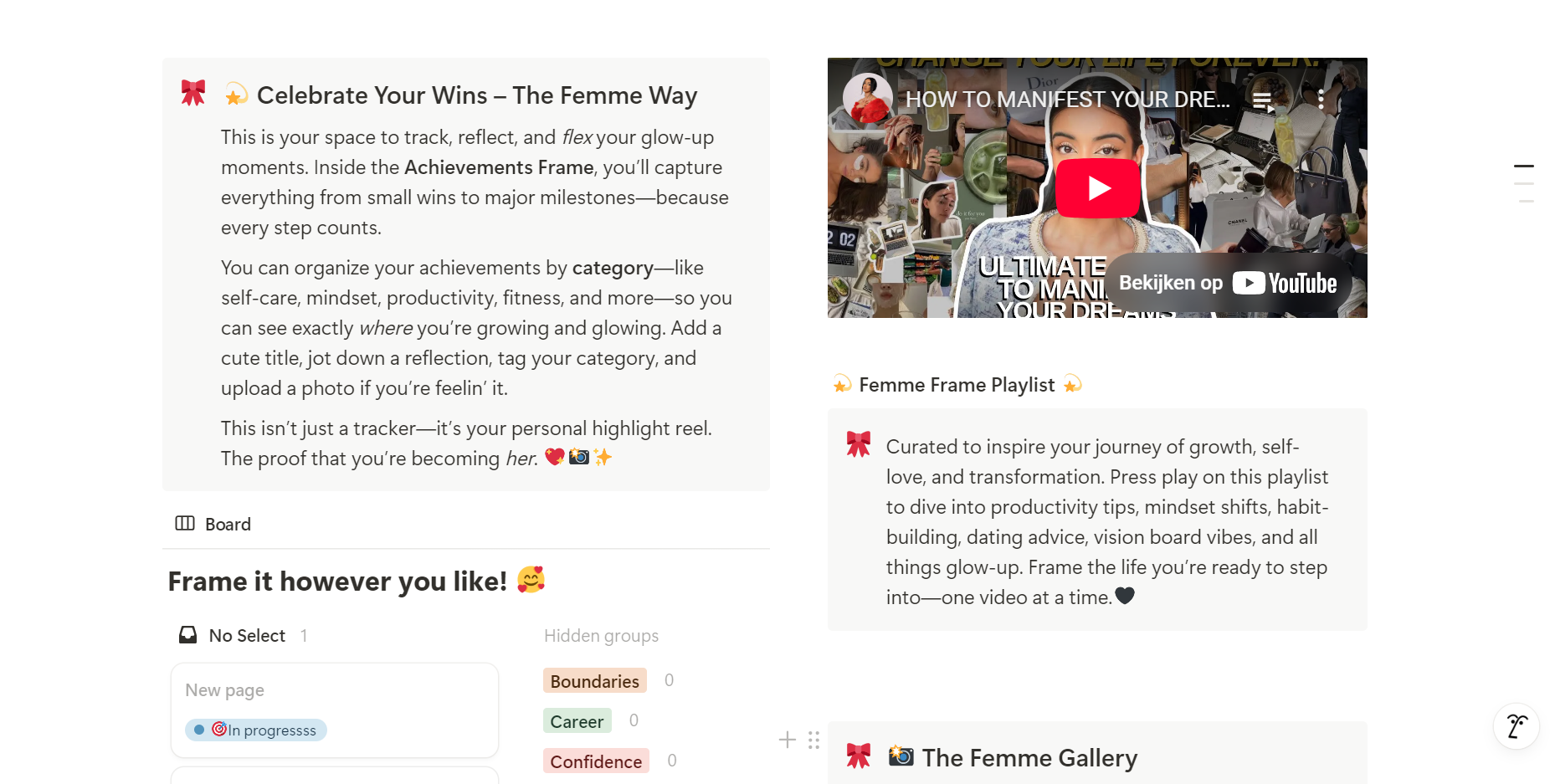 Only select pages are shown here — The Femme Frame includes over 10 thoughtfully designed pages to support your glow-up journey 💫