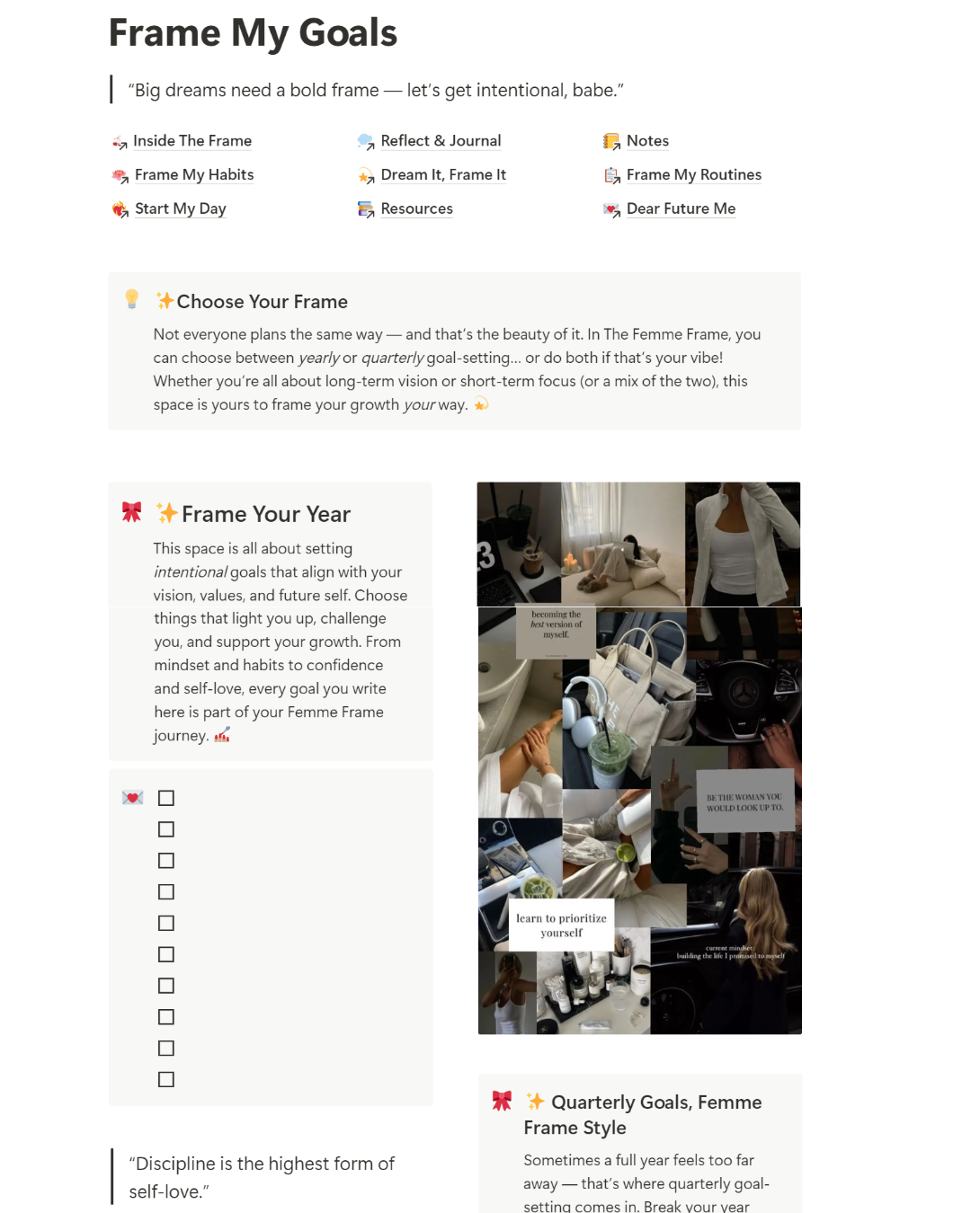 The Femme Framework — Notion Digital Planner + PDF Guide